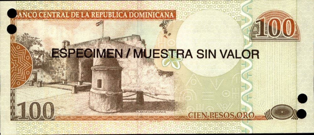 100 بيزو هناك خطأ بسيط في القص واضح بالصورة بالطرف السفلي لايؤثر على العملة وحالتها